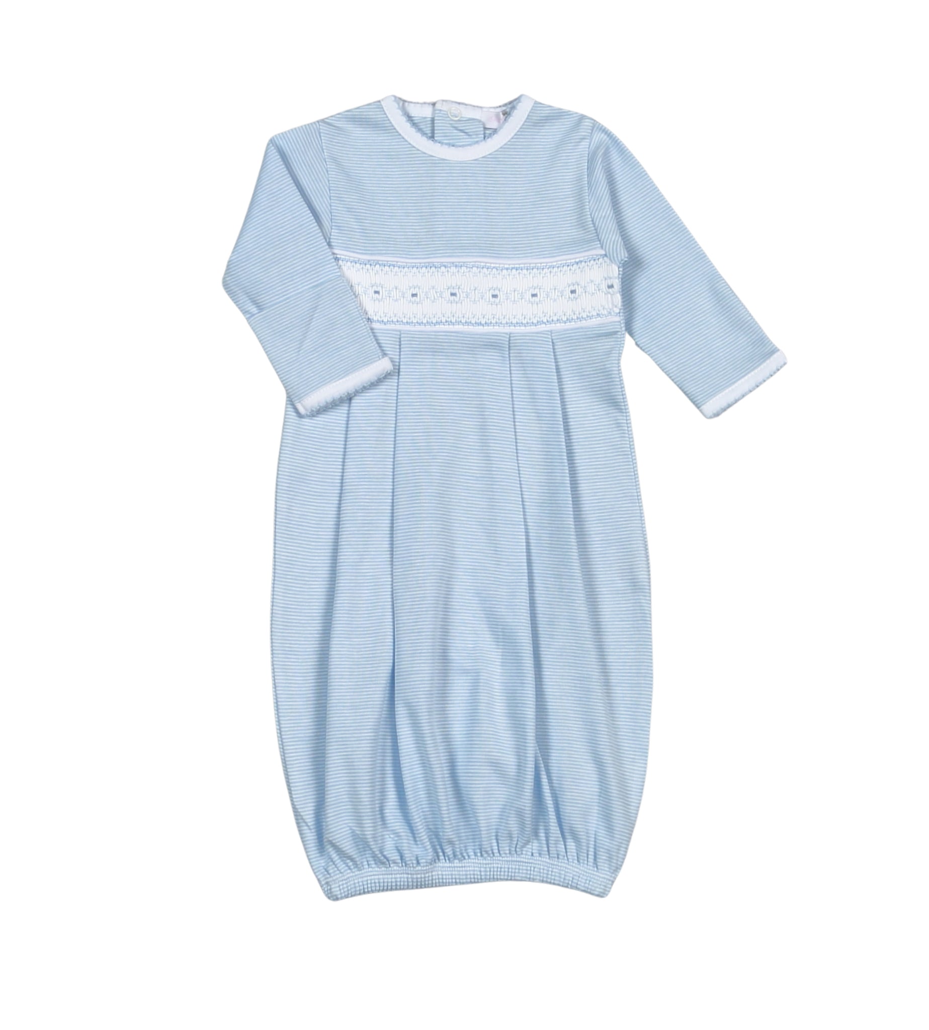 Hand Smocked Pima Gown - Tim Blue Stripe