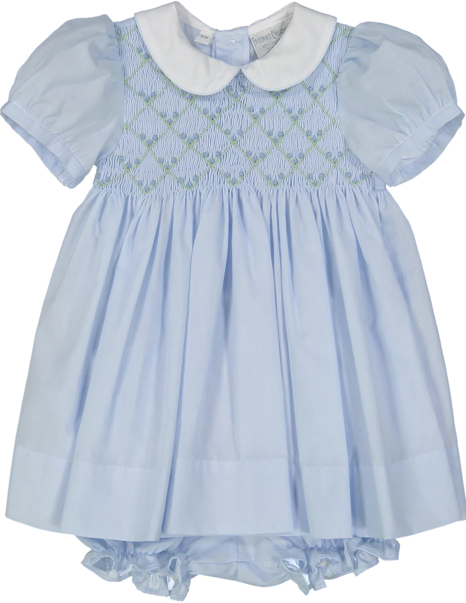 Rosebud Diamond Smocked Dress - Blue/White - no bloomers